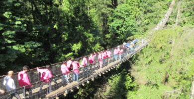 カナダ班はバンクーバーを訪れ,現地の大学生との交流やレイクカヌーを行ったり,キャピラノ渓谷でカナダの雄大な自然を体感したりすることができました。普段教室で学んでいる英語を実際に聞き,話すことで英語が伝わった喜びを感じたり,帰国後の英語学習のモチベーションを高めることができた生徒もいたようです。
