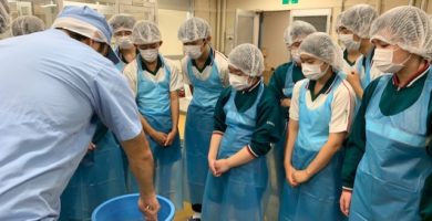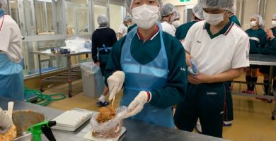 10月25日(金)に中等部3年生は農大の食品加工センターで味噌の袋詰め作業を行いました。