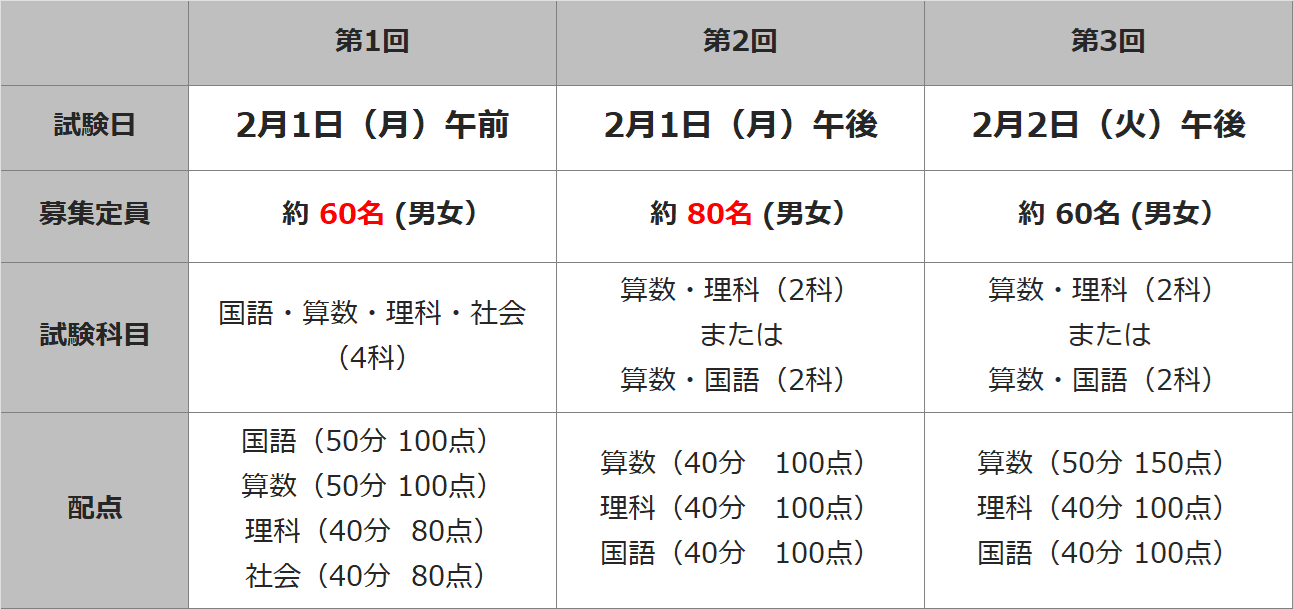 2027年入試では、2月4日午前入試の廃止および2月1日午前入試の定員増など大きな変更がございます。