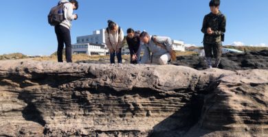 天候にも恵まれ,地層のいろいろな形式の観察や海岸独特の植生に触れ,有意義に過ごすことができました。