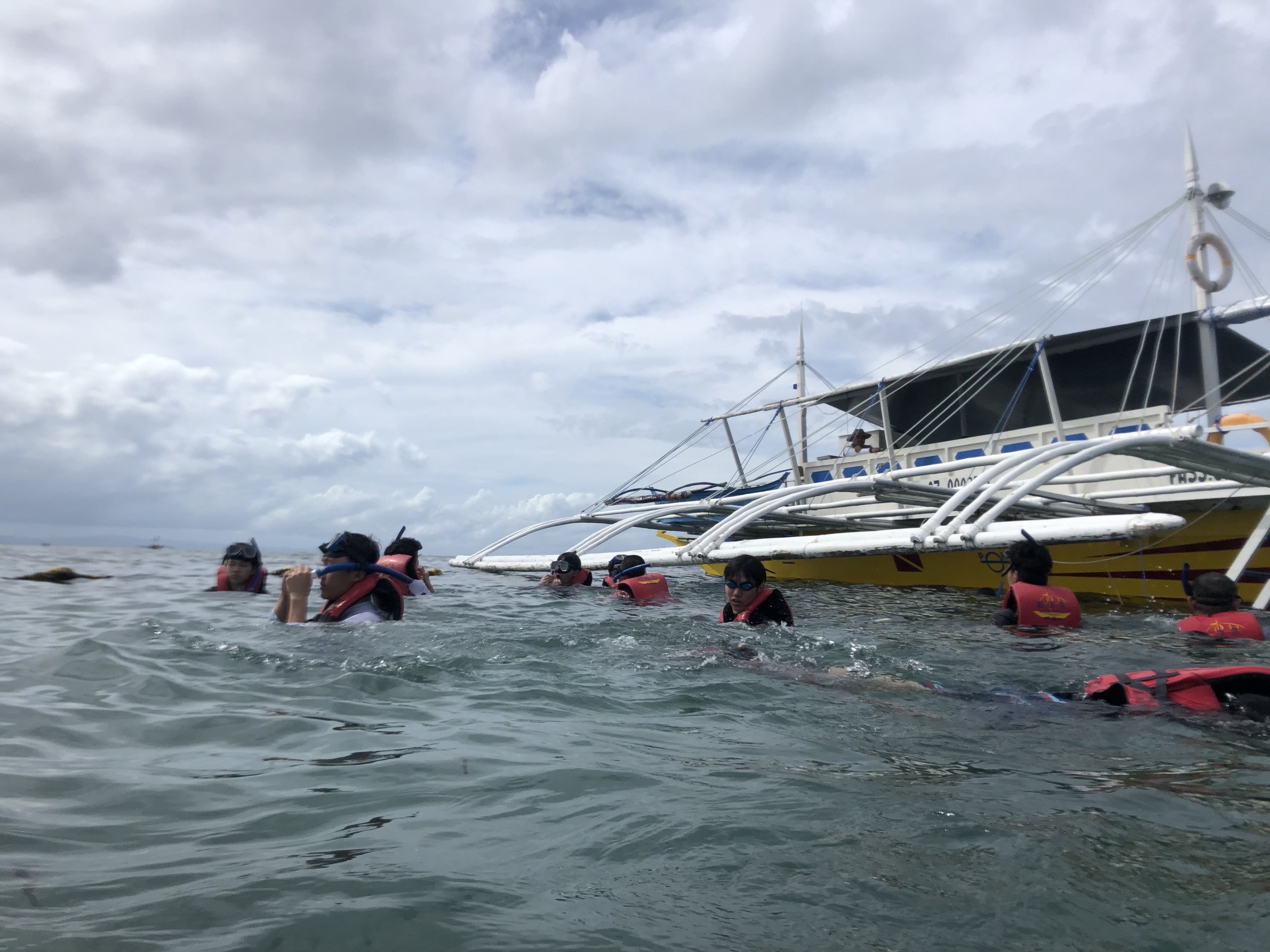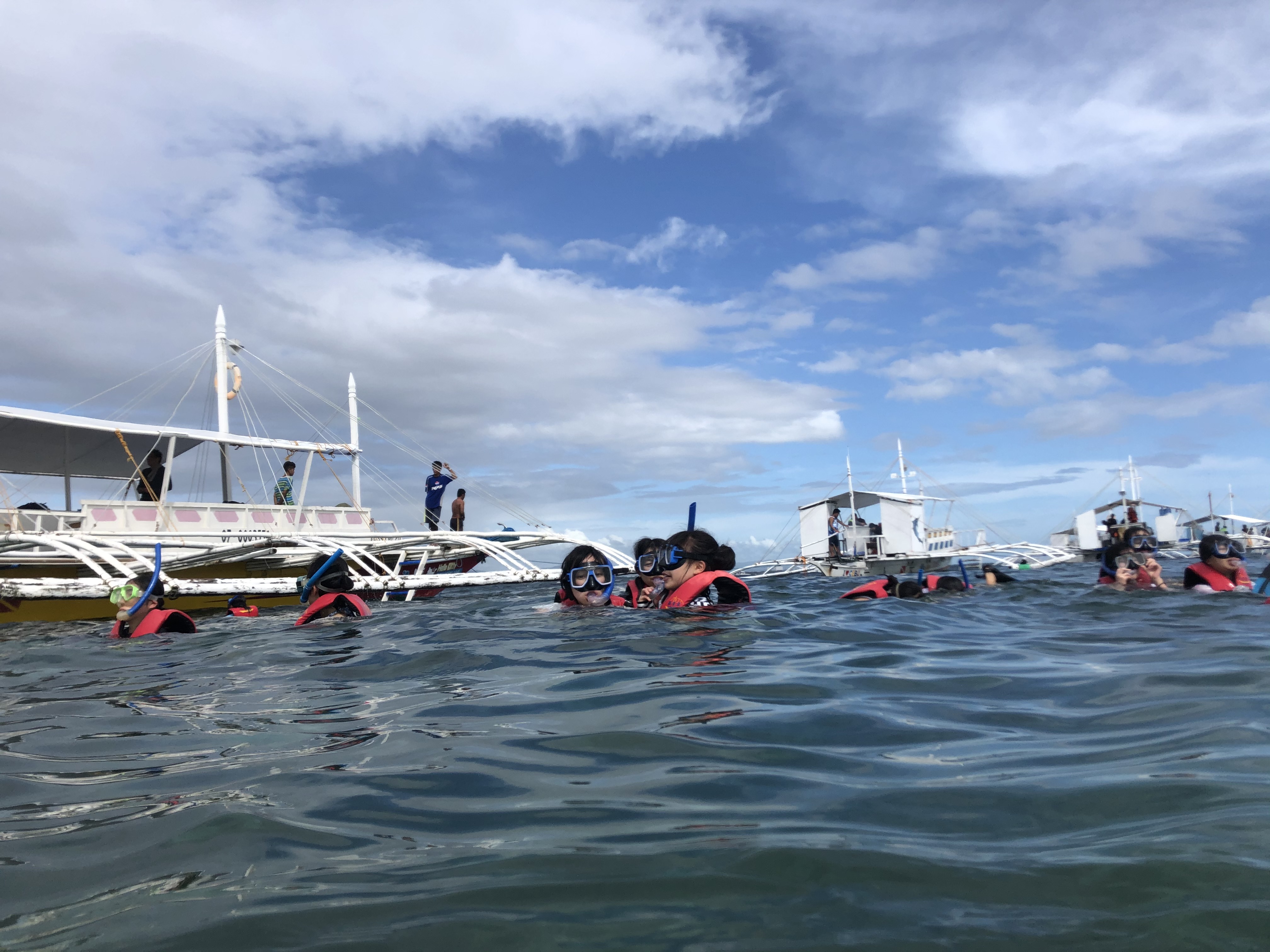 本日はIsland Hoppingです。 マクタン島から船で移動し、オランゴ島周辺でシュノーケリングを行いました。 その後ナルスアン島に移動し昼食を食べ、桟橋で写真を撮ったり、ビーチで遊んだり、バナナボートに乗ったりと自由な時間を過ごし海を満喫しました。 明日は、早朝スパルタからスタートです。