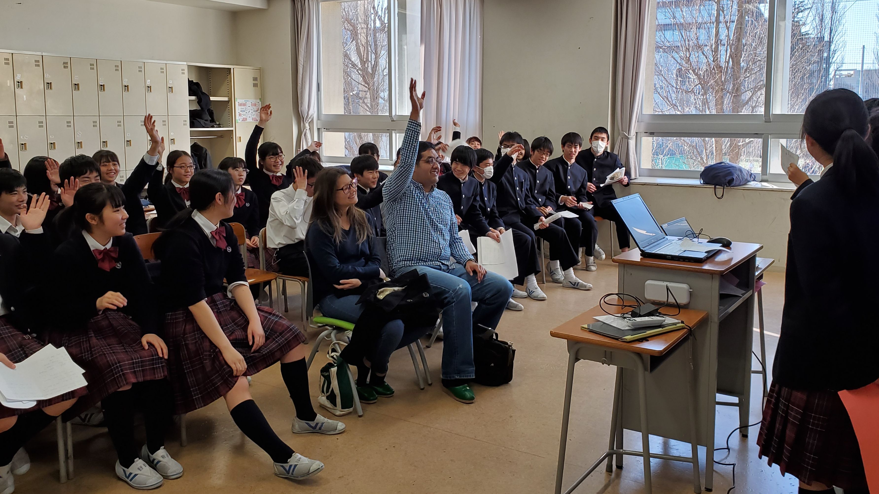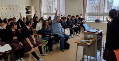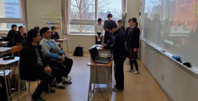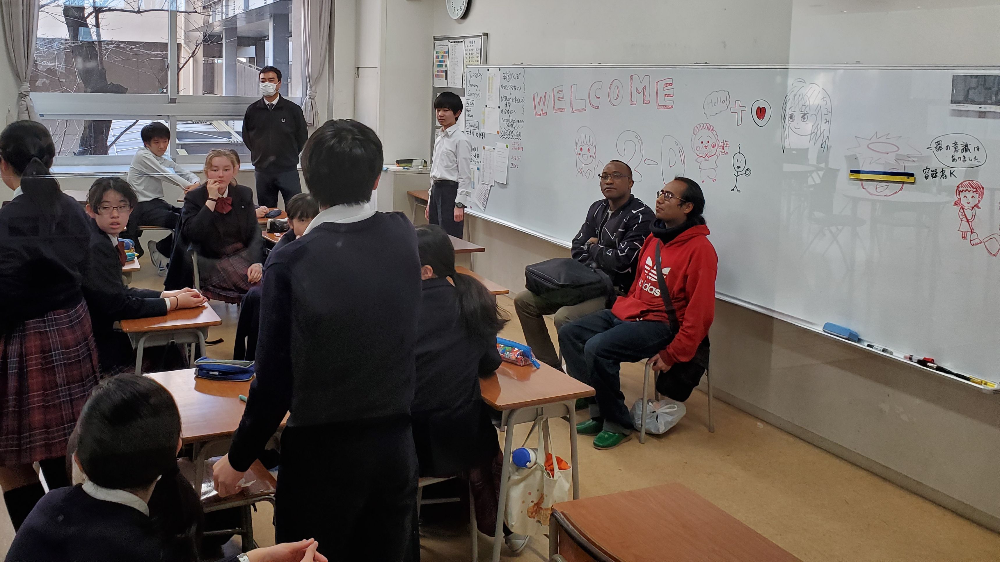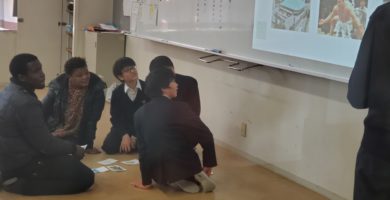 1月21日(火)の中等部第2学年の総合学習の時間に、東京農業大学の留学生に来校いただき、英会話で日本の文化をお伝えする交流会を約1時間ほど実施しました。各クラスで企画・運営し、大学生(留学生)の方々に、2学期に実施した「奈良京都宿泊研修」の内容を説明したり、クイズ形式で日本の文化をお伝えしたり、体験してもらったりしました。本校生徒たちにおきましては、日頃、学んでいる英語を活用するよい機会となりました。本校は大学が隣接していますので、このような企画を今後も続けていきたいと思います。