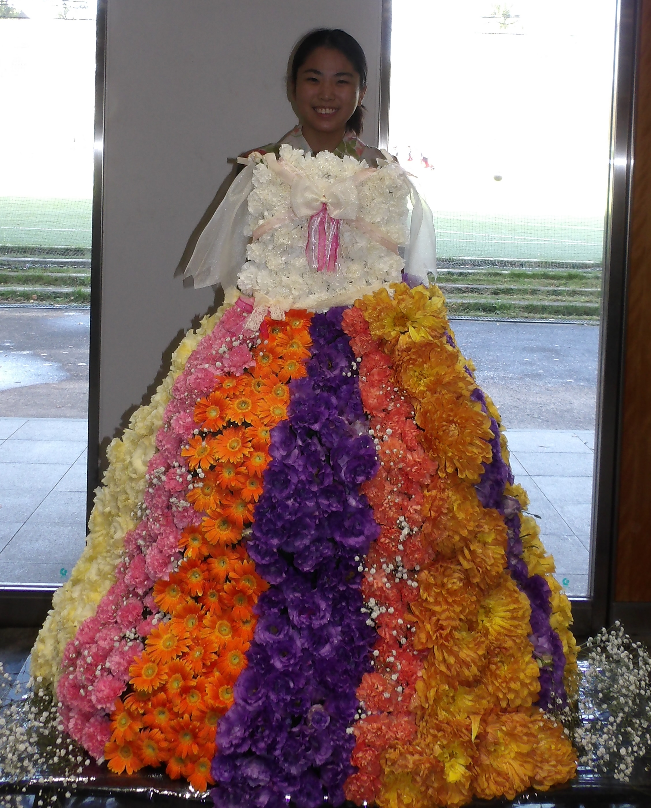 今年度の桜花祭の一般公開は中止となりましたが、共同制作「Dress」を本日(10月18日)完成させました。 職員玄関に数日間展示しています。学校見学などでご来校される機会がありましたら「Dress」を着た写真を ご自由にお撮りください。