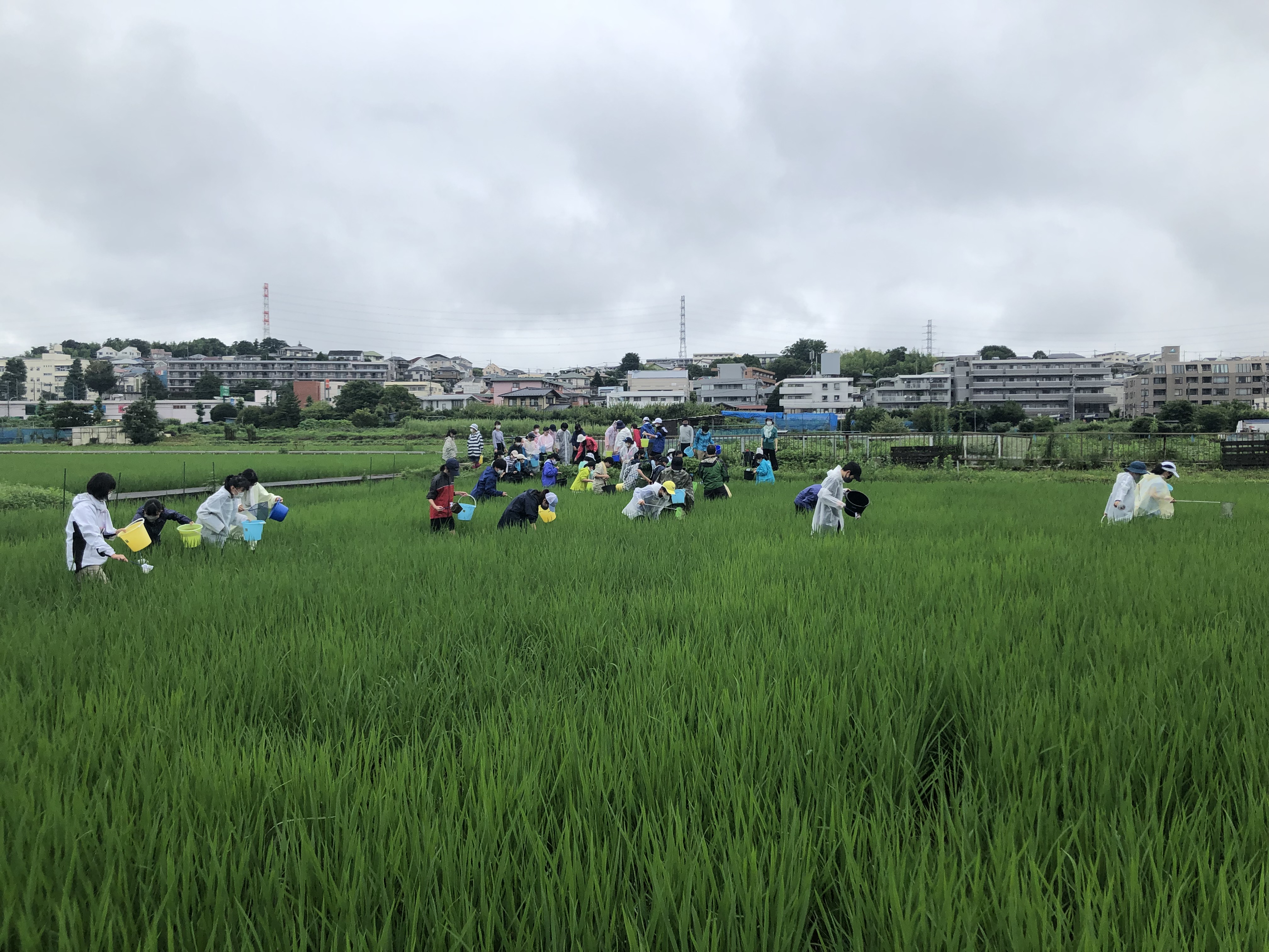 田んぼに入り、浮草やオタマジャクシを取り、楽しそうに活動していました。