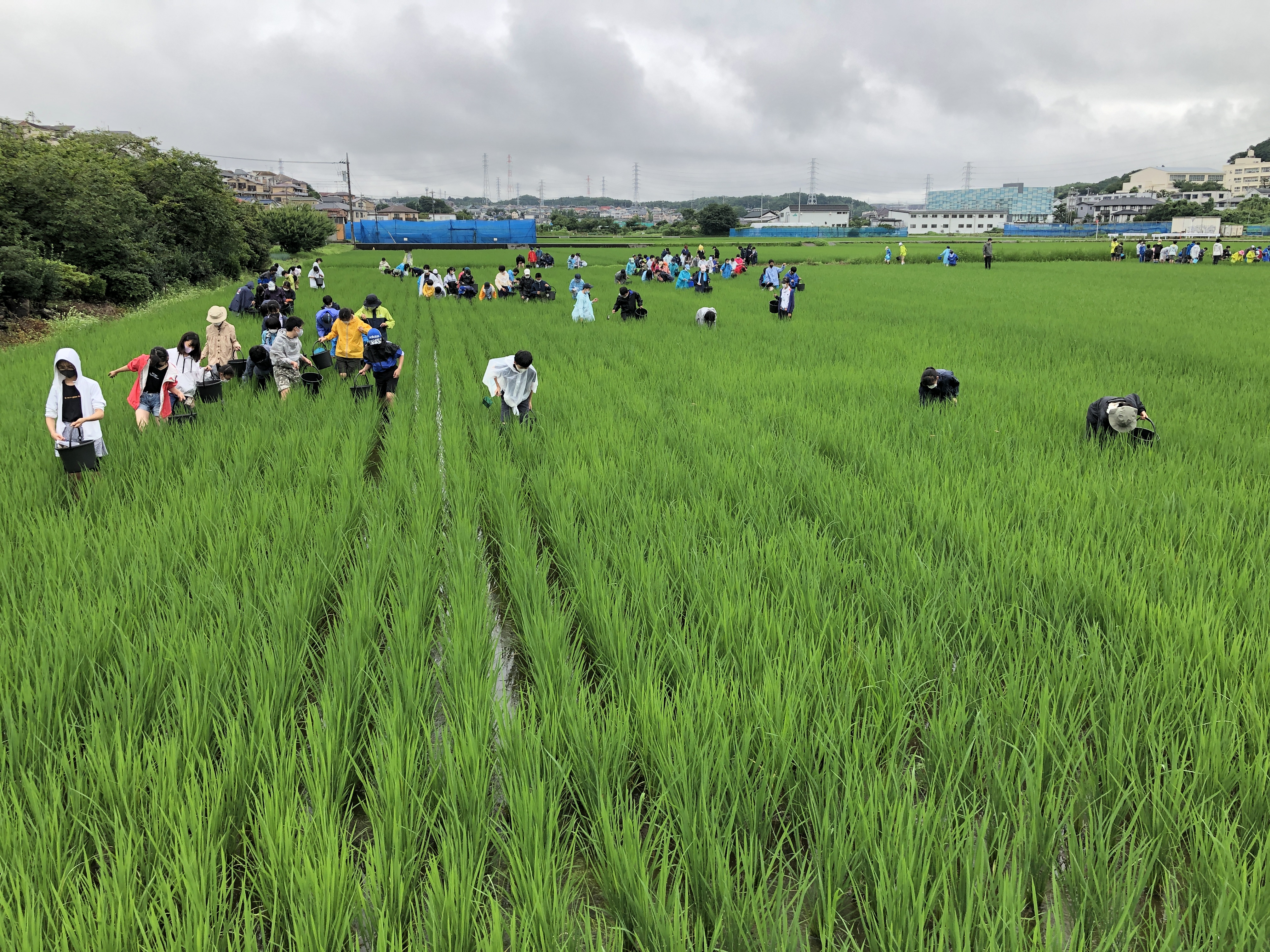 生徒たちは、稲の生長を目のあたりにし驚きつつも、