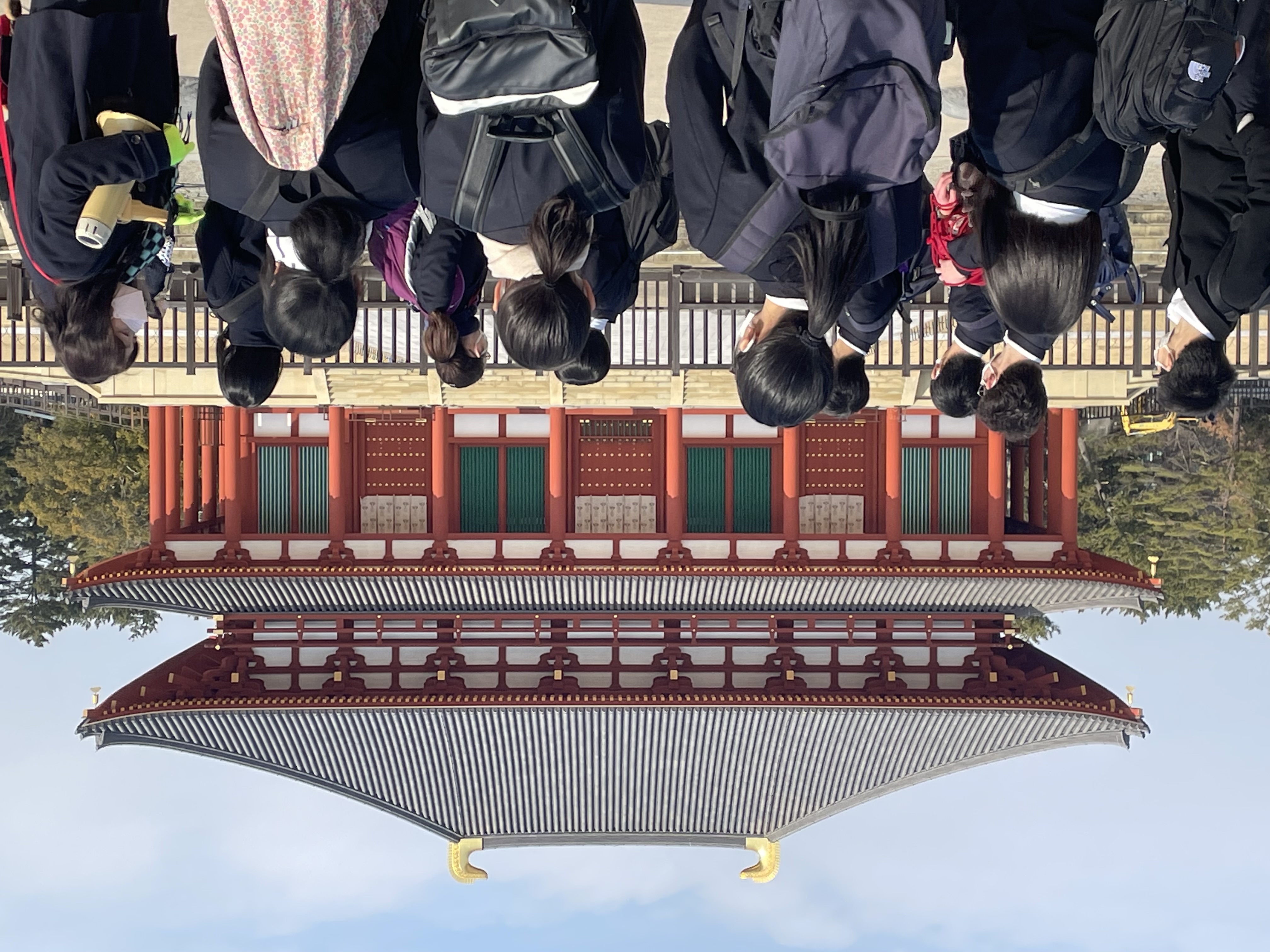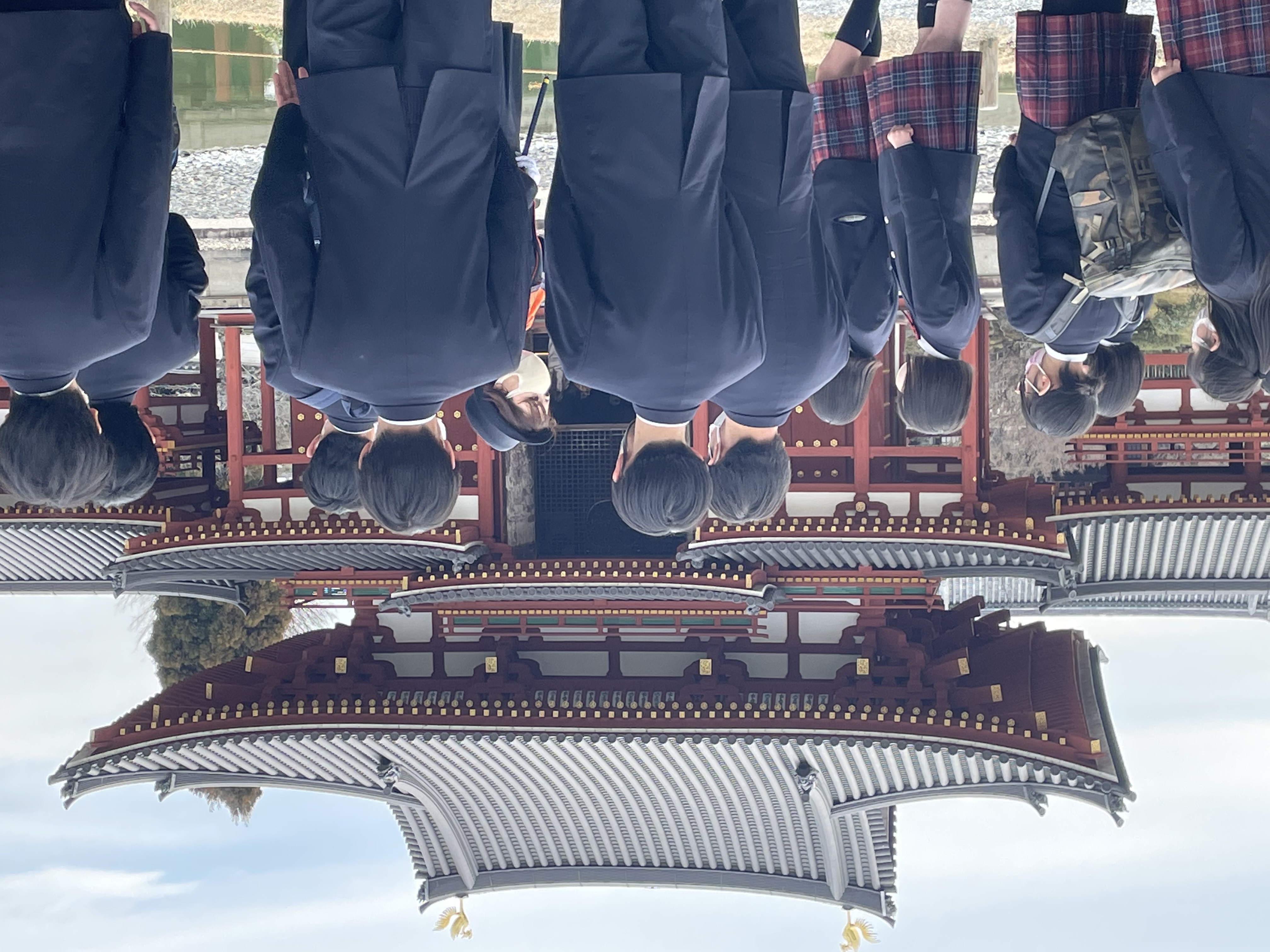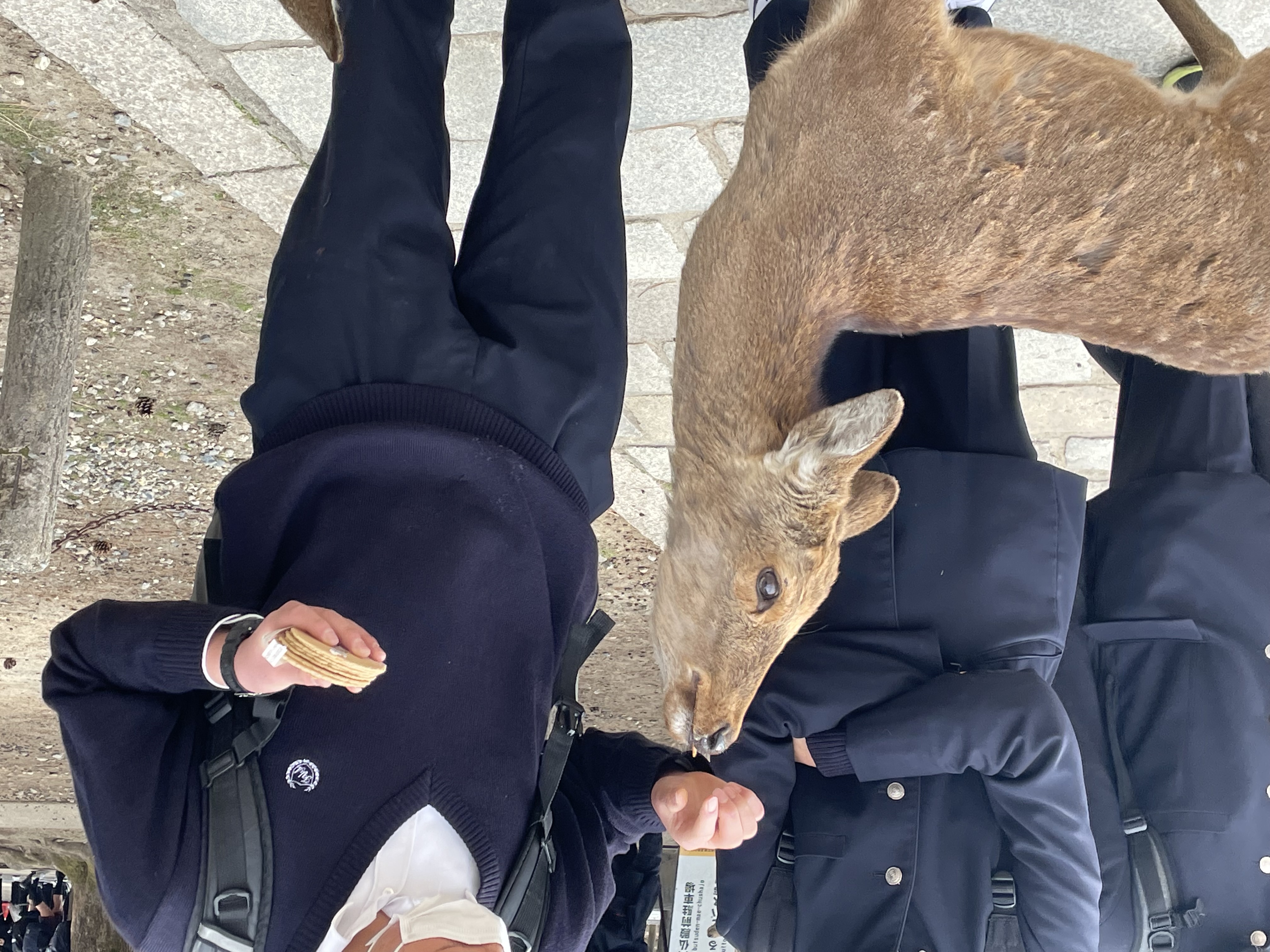 昨日に続き、好天に恵まれた2日目、午前中は1300年以上の歴史を刻んでいる、和銅3年の平城京遷都とともに藤原不比等のよって現地に造営された「興福寺」と「興福寺国宝館」を見学し、その後、奈良時代に聖武天皇が国力を尽くして建立した寺である「東大寺」、境内の中でも世界最大級の木造建築である大仏殿の中に収まっている「大仏様」。指し出された左手の掌に14人が乗れるその大きさに驚いていました。また、公園内にいる国の天然記念物に指定されている「奈良のシカ」に鹿せんべいを与えて盛り上がっていました。午後からは、永承7年関白藤原頼道によって父道長の別荘を寺院に改め創建された「平等院」、10円玉に刻まれている、極楽浄土の宮殿をモデルにした「鳳凰堂」、現1万円札にも描かれている「鳳凰」などを見学しました。そして今日の最後は、「伏見稲荷大社」、今の世界から神様のいる世界へ通る門として建てられた「千本鳥居」に圧倒されていました。
